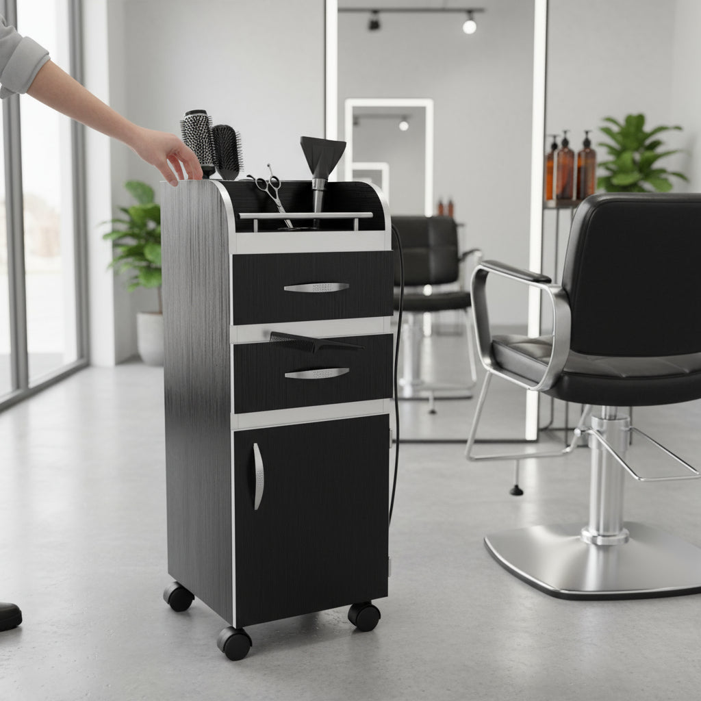 El Carro Auxiliar Mod. Paris de Dimubell es la solución perfecta para estéticas que buscan funcionalidad y diseño elegante. Con un tamaño compacto de 35 cm de ancho y largo, y una altura de 85 cm, se adapta idealmente a cualquier espacio mientras ofrece una gran capacidad para organizar tus herramientas y productos.Este modelo cuenta con tres cajones, ideales para almacenar todo lo que necesitas a mano, sin sacrificar el estilo. Fabricado en triplay y MDF, su construcción garantiza durabilidad y resistencia, siendo una opción confiable para el uso diario en un entorno profesional.Con un diseño que combina practicidad y estética, el Carro Auxiliar Mod. Paris complementa tu espacio de trabajo y mejora la experiencia de tus clientes. Eficiente, atractivo y con un acabado moderno, se convierte en el aliado perfecto para optimizar tu flujo de trabajo en el salón de belleza.