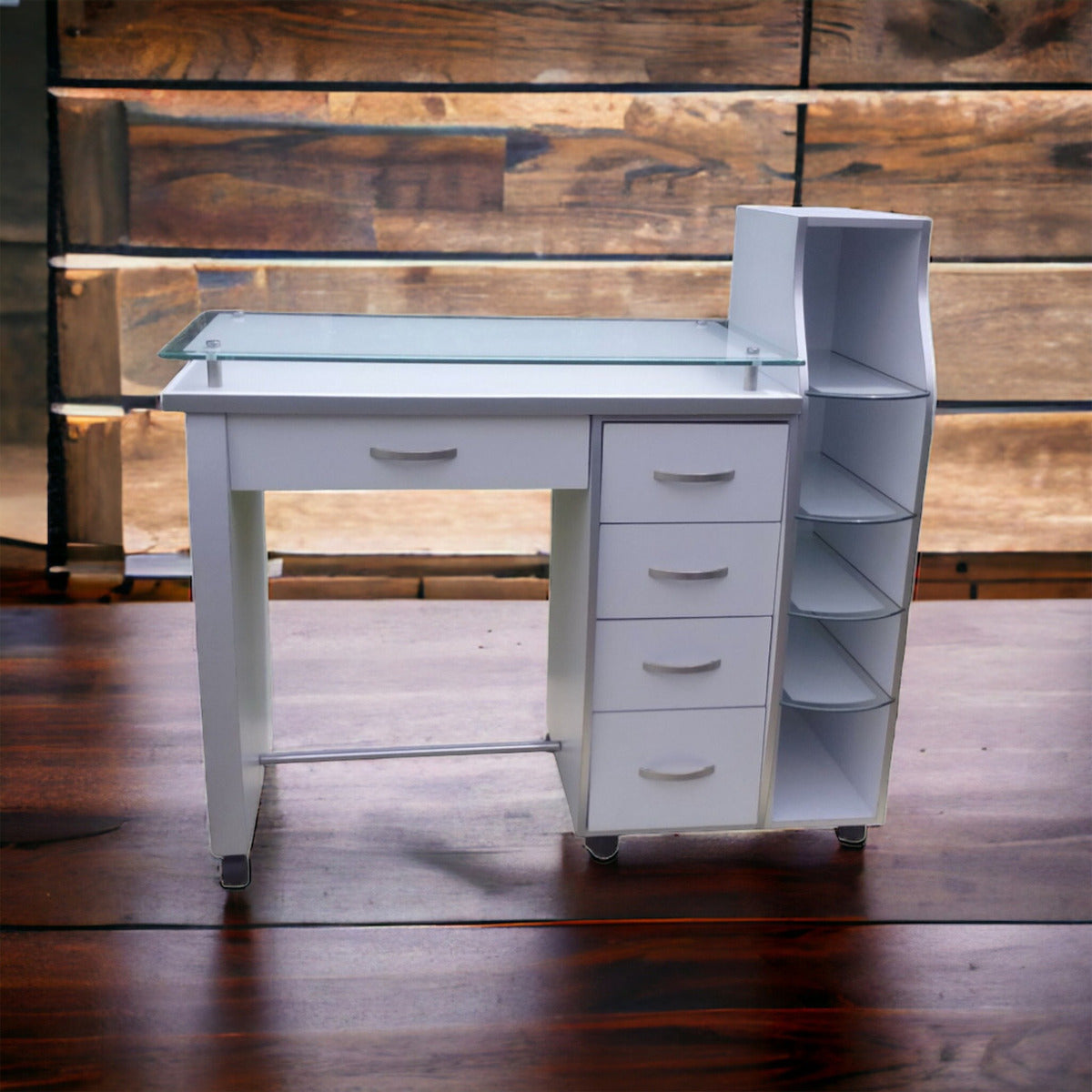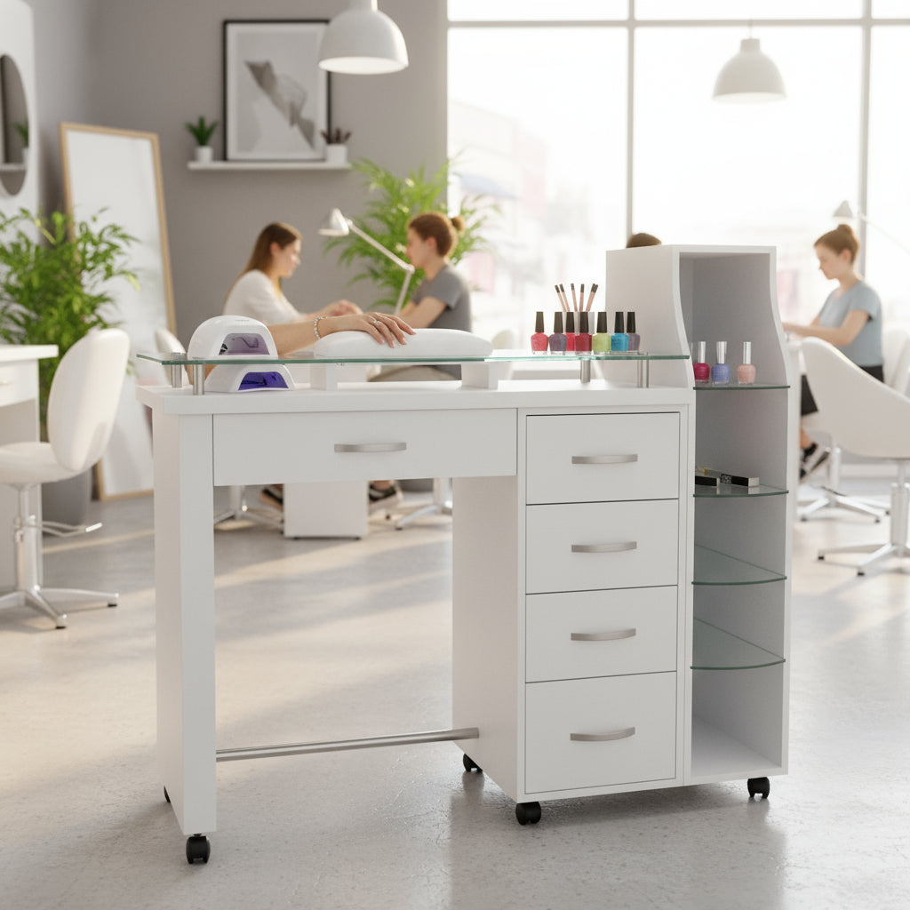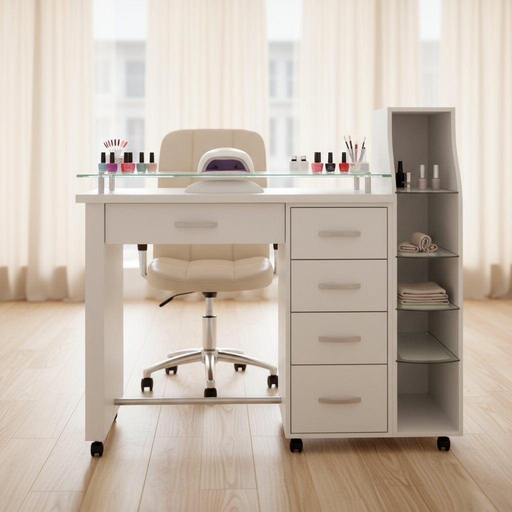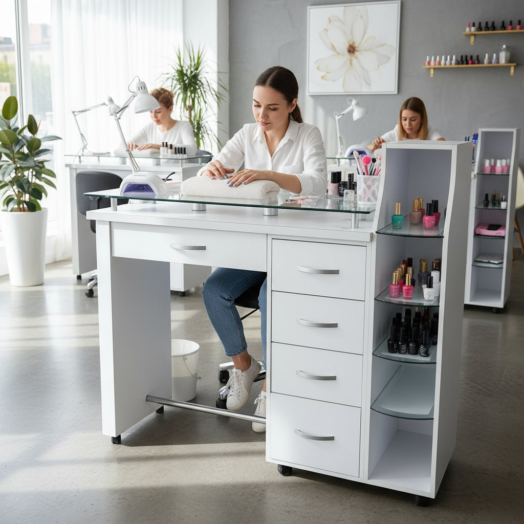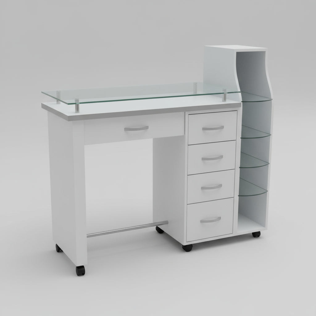 La Mesa Para Manicura Modelo Rodas de Dimubell es el complemento esencial para profesionales de la estética que buscan maximizar la funcionalidad y la comodidad en su espacio de trabajo. Diseñada específicamente para el uso en manicura, esta mesa cuenta con ruedas que facilitan su traslado, permitiendo una mayor flexibilidad al momento de atender a los clientes. Con unas dimensiones específicas de profundidad de 43 cm, esta mesa optimiza el área de trabajo sin sacrificar la libertad de movimiento. Ideal para salones de belleza y spa, su diseño práctico se adapta a diversas configuraciones interiores. Aunque no incluye asiento, su estructura proporciona un ambiente de trabajo eficiente y ergonómico. La Mesa Rodas no solo ofrece un espacio adecuado para las herramientas de manicura, sino que también se integra con elegancia en cualquier entorno profesional. El diseño de esta mesa es una invitación a la creatividad y el profesionalismo, garantizando que cada tratamiento de manicura se realice con comodidad y estilo. Invierte en tu espacio de trabajo y mejora la experiencia de tus clientes con la confiabilidad que solo Dimubell puede ofrecer. Eleva tu servicio estético al siguiente nivel con esta mesa pensada para satisfacer las necesidades de quienes se dedican a la belleza y el cuidado personal.