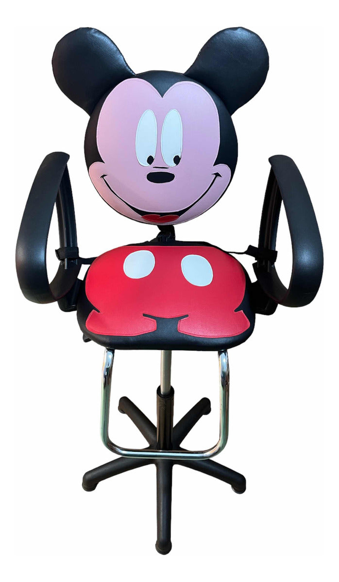 Sillón De Corte Infantil Para Estéticas Mod Mickey Mouse Negro Y Rojo Fijo Estrella