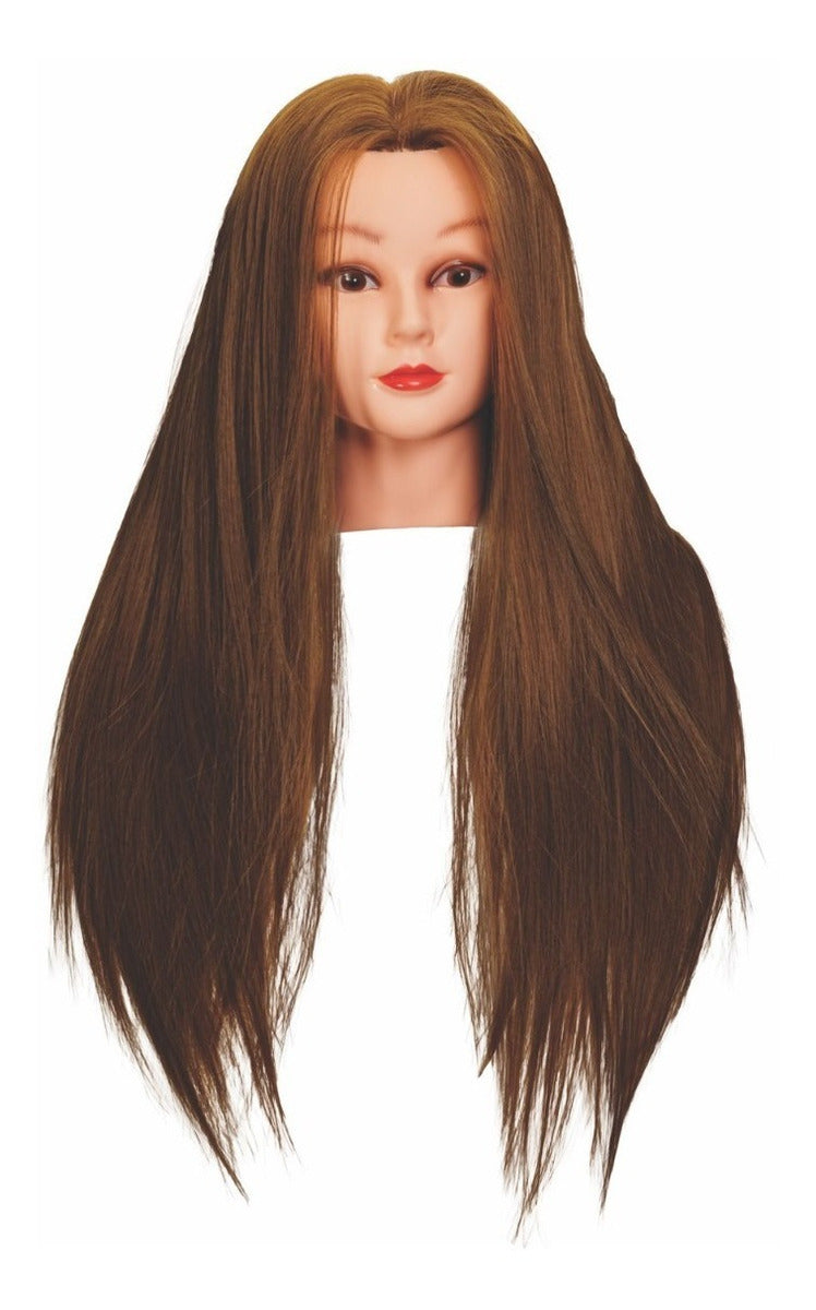 Cabezote con Cabello de Fibra Sintética color Castaño OscuroIdeal para profesionales y estudiantes del ámbito de la belleza que buscan practicar técnicas de corte, tejido, tinte y peinado. Este accesorio de entrenamiento permite mejorar habilidades en peluquería.Cuenta con una cabeza de tamaño real y cabello sintético, adecuado para lavar, acondicionar, cortar, trenzar y estilizar. No es apto para procedimientos químicos.El cabello está distribuido de manera uniforme y presenta líneas de crecimiento realistas para facilitar un estilizado adecuado.Posee un largo en capas de 22” y 24” (50 cm y 56 cm).Color del cabello: Castaño medio.No es resistente al calor; se recomienda no usar herramientas de calor.Incluye una base para fijar a mesas.