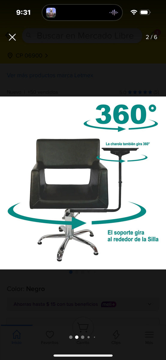 Charola Auxiliar Giratoria Silla Corte Barbero Letmex Bm200 Negro