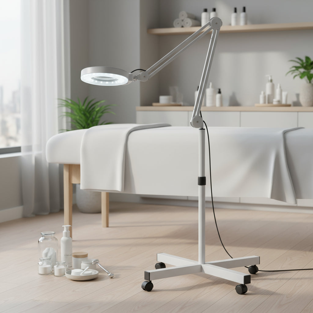 La Lámpara Para Faciales 5X Con Base De Pedestal Spa de la marca LETMEX es una herramienta esencial para todo profesional del cuidado facial. Su diseño práctico y funcional permite una iluminación óptima, facilitando la observación detallada de la piel y proporcionando un mejor enfoque en los tratamientos estéticos.Con una capacidad de aumento de 5 veces, esta lámpara permite ver imperfecciones y necesidades específicas de cada cliente, asegurando un diagnóstico preciso y un tratamiento efectivo. El brazo flexible ofrece la posibilidad de ajustar la lámpara a la posición deseada, garantizando comodidad tanto para el profesional como para el cliente durante la sesión.Este modelo, dentro de la línea Facial, es ideal para spas y salones de belleza, promoviendo una experiencia superior en cada tratamiento. La calidad de su construcción asegura durabilidad y fiabilidad, adaptándose a las exigencias de un entorno profesional.Garantía de fábrica: 12 meses