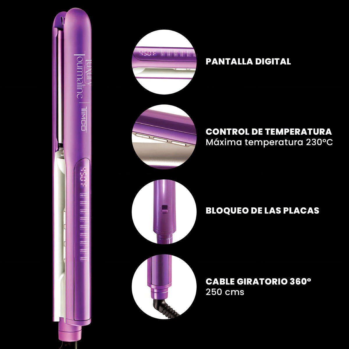 Plancha De Cabello Profesional Termoprotect Cabello Timco Color Violeta