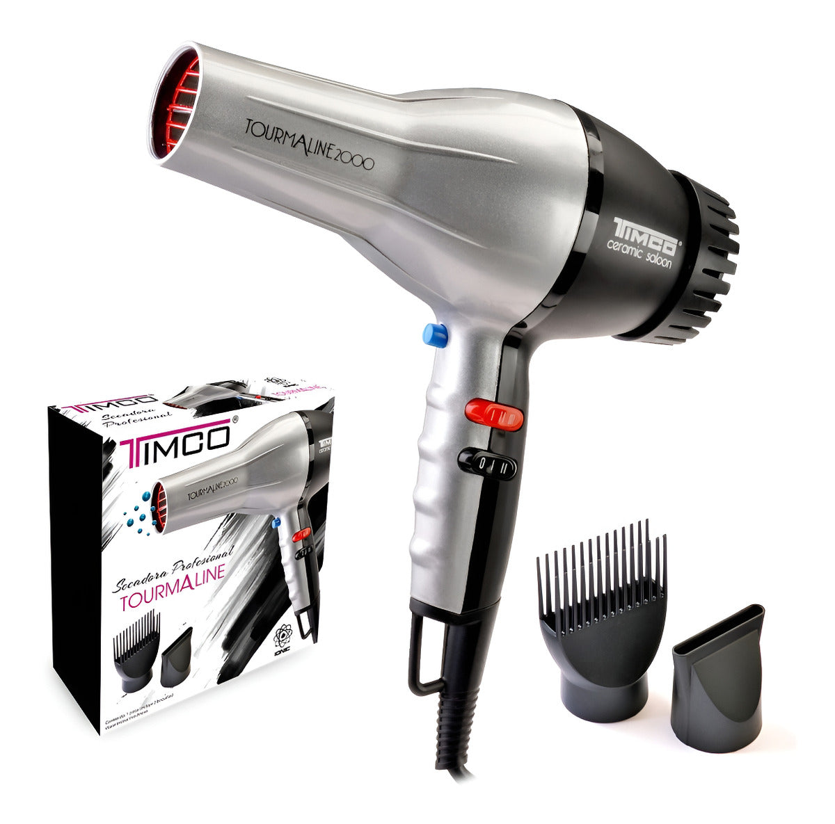 Secadora Profesional Timco® Tourmaline TCS-2000Timco® sabe que las secadoras de cabello son un producto necesario en todos los salones o tocadores, por esta razón es que se han dedicado a fabricar una gran variedad de modelos para que puedas adquirir la secadora que mejor se adapte a tus necesidades y presupuesto. Esta vez te presentamos la secadora Tourmaline TCS-2000, este modelo se distingue por su potente motor de larga duración, excelente flujo de aire, por contar con tecnología Tourmaline y por generar iones negativos, esta combinación de calidad y tecnología convierte a la TCS-2000 de Timco® en uno de los mejores modelos para uso profesional o casero.Características • Modelo TCS-2000.• Aprobada por los profesionales.• 2000W.• Alámbrica (corriente directa).• 125v.- 60 Hz.• Cable redondo con clavija normal (americana).• Agarre ergonómico.• 4 Temperaturas.• 2 velocidades. • Botón de aire frío.• Carcasa plástica.• Pesa 840g. (aprox.)• Tecnología Tourmaline.• Con cerámica. • Generador de iones.• Filtro removible.° Medidas °• Secadora 20cm. de alto, 23 de largo, mango 11.5cm.• Boquilla de secadora 4.4cm. de diámetro.• Cable 2.80m.• Producto completo 26.5cm. de largo, 28.3cm. alto, 11cm. de ancho, 1.23kg.Incluye• Secadora TCS-2000.• 2 Boquillas.Recomendaciones» Para evitar daños en el cable es importante desconectar el aparato desde la clavija, nunca tires del cable para desconectarlo. » Es recomendable mantén la secadora aproximadamente a 20 cm. de distancia de su cabello y utiliza siempre un protector de calor. » Es muy importante limpiar el filtro para evitar que la secadora se sobrecaliente.
