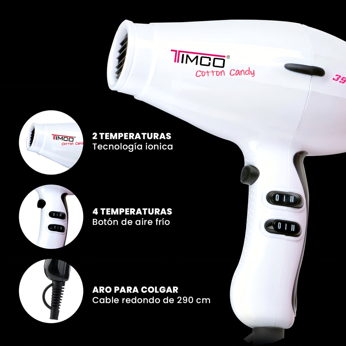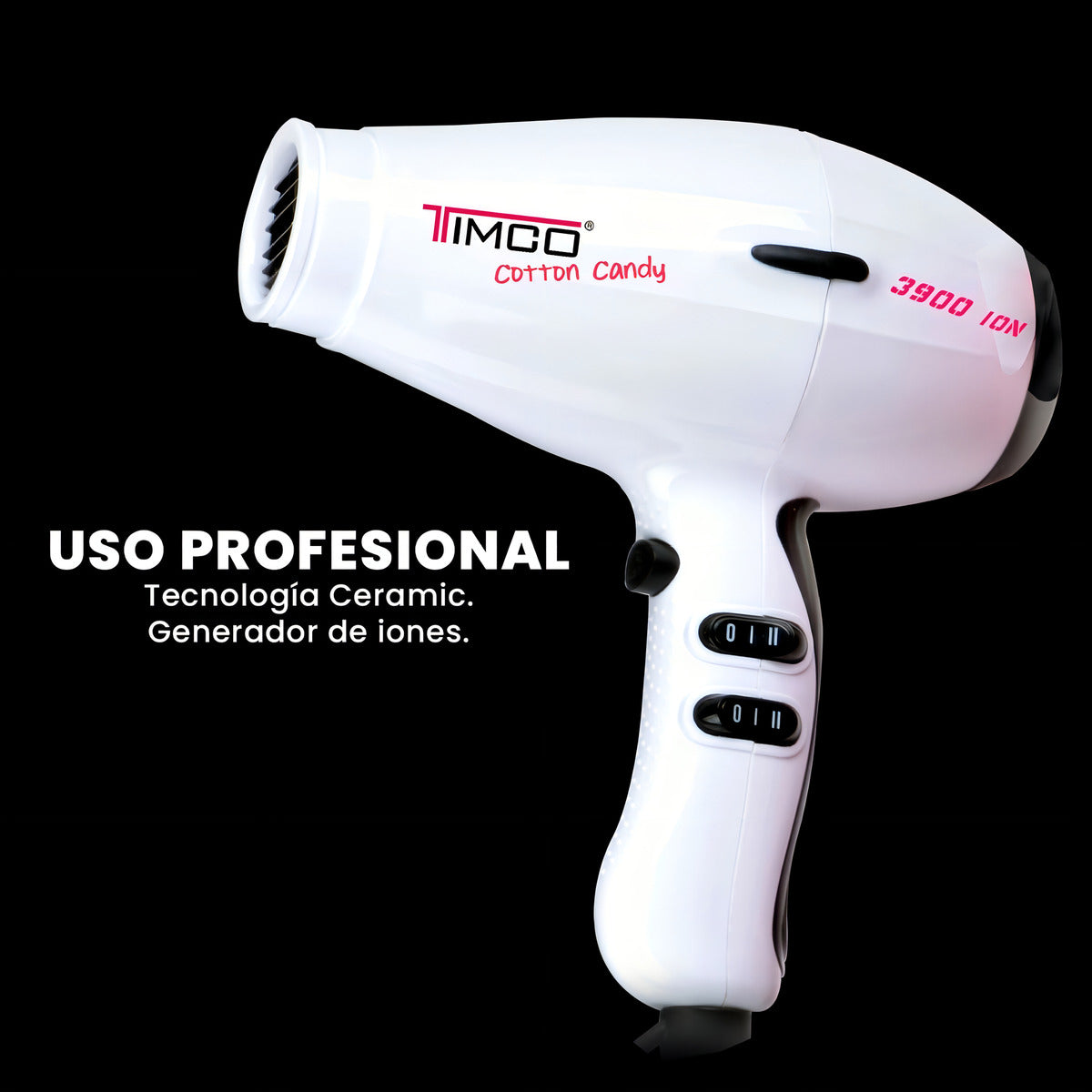La Secadora de Cabello Profesional Cerámica TIMCO HP-3900B es una herramienta de secado de calidad profesional. Con su tecnología cerámica y generador de iones, esta secadora cuidará tu cabello y te brindará resultados de salón en la comodidad de tu hogar.Esta secadora cuenta con 2 velocidades y 4 temperaturas, lo que te permite personalizar y ajustar el flujo de aire y la temperatura según tus necesidades y tipo de cabello. Además, cuenta con un botón de aire frío que te permite fijar tu peinado y darle un acabado duradero.La tecnología cerámica ayuda a distribuir uniformemente el calor y proteger tu cabello del daño por calor. El generador de iones reduce el frizz y mantiene tu cabello suave y brillante.La secadora incluye 2 boquillas que te permiten dirigir y concentrar el flujo de aire, facilitando la creación de estilos y desafiando tu creatividad. También cuenta con un filtro removible que es fácil de limpiar, manteniendo el rendimiento de la secadora en óptimas condiciones.El aro para colgar te permite guardar la secadora de manera conveniente y mantenerla siempre a mano. Además, el cable redondo de 290 cm te brinda la libertad de movimiento durante el secado, sin restricciones incómodas.Con la Secadora de Cabello Profesional Cerámica TIMCO HP-3900B, podrás disfrutar de un secado profesional en la comodidad de tu hogar. Cuida tu cabello y obtén resultados de salón con esta potente secadora que ofrece tecnología avanzada y características útiles para un secado perfecto.- Secadora profesional.- Tecnologia Ceramic.- Generador de iones.- 2 velocidades.- 4 temperaturas.- Boton de aire frio.- Filtro removible.- Incluye 2 boquillas.- Aro para colgar.- Cable redondo de 290 cm.