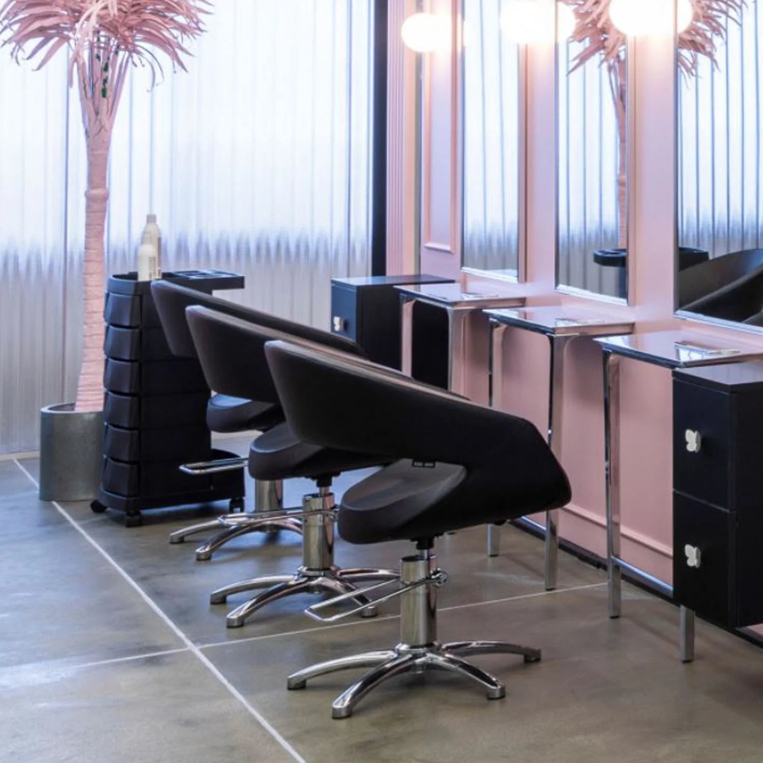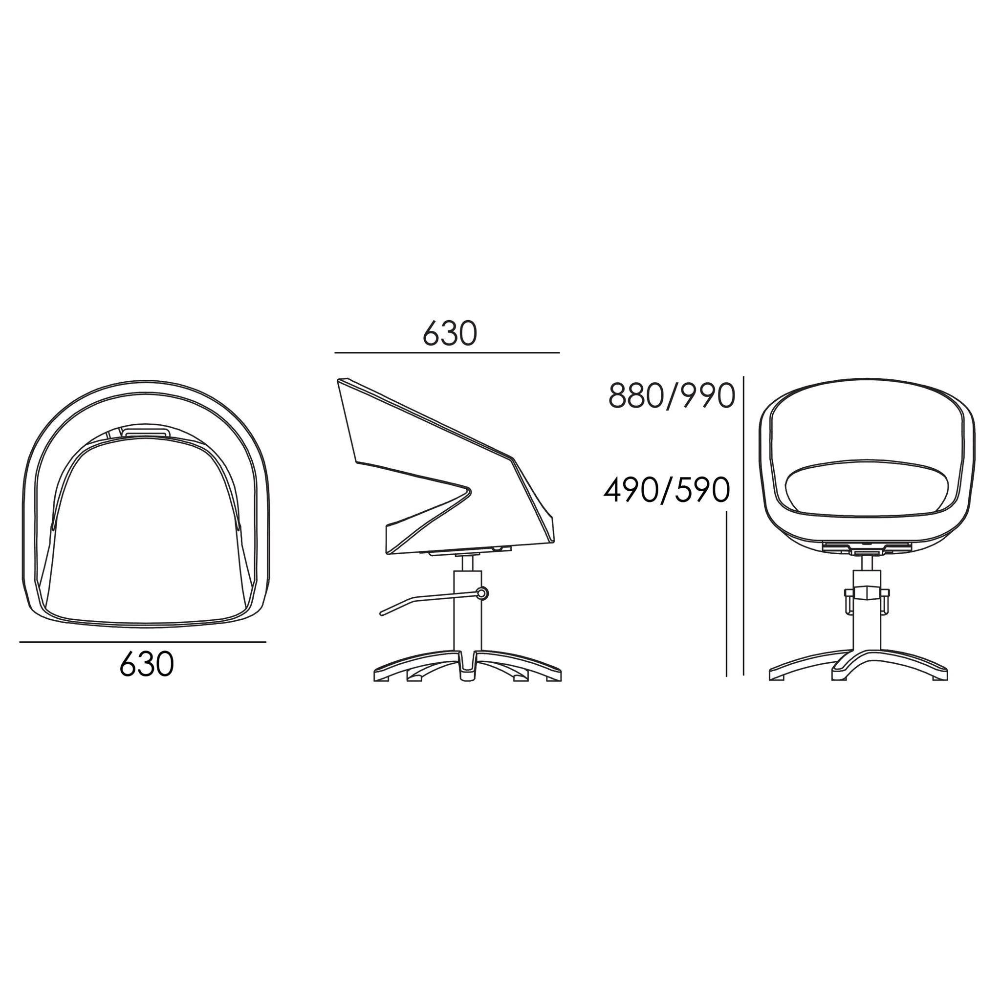 Base de estrella en aluminio pulido con bomba hidráulica y freno de cierre automático.