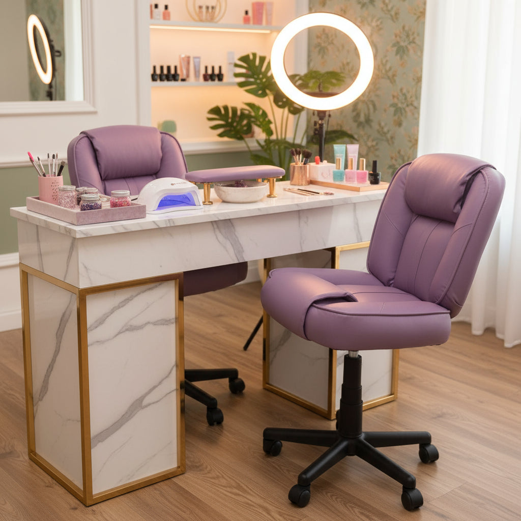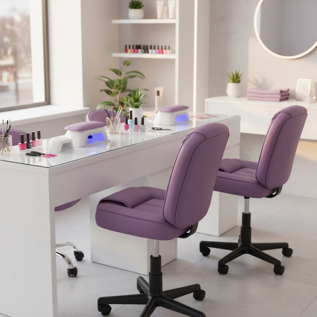 Transforme su espacio de trabajo con el Par de Sillas de Manicure Mod. Confort de Dimubell. Diseñadas para proporcionar la máxima comodidad, estas sillas cuentan con un sofisticado acabado negro que se integra fácilmente en cualquier entorno profesional. Su altura y acojinamiento junto con la base neumática, permiten un ajuste perfecto para cada cliente y profesional.La movilidad está garantizada gracias a las ruedas, que facilitan el movimiento sin esfuerzo. Además, el diseño ergonómico ofrece un apoyo óptimo durante largas jornadas de trabajo. Ideal para salones de belleza y profesionales independientes, estas sillas aportan elegancia y funcionalidad.Disfrute de la combinación perfecta entre diseño moderno y comodidad. Mejore la experiencia de sus clientes y optimice su espacio de trabajo con estas sillas, que no solo son prácticas, sino que también elevan la estética de su salón. Haga de su área de manicura un lugar donde cada visita sea un placer.Garantía del vendedor: 12 meses