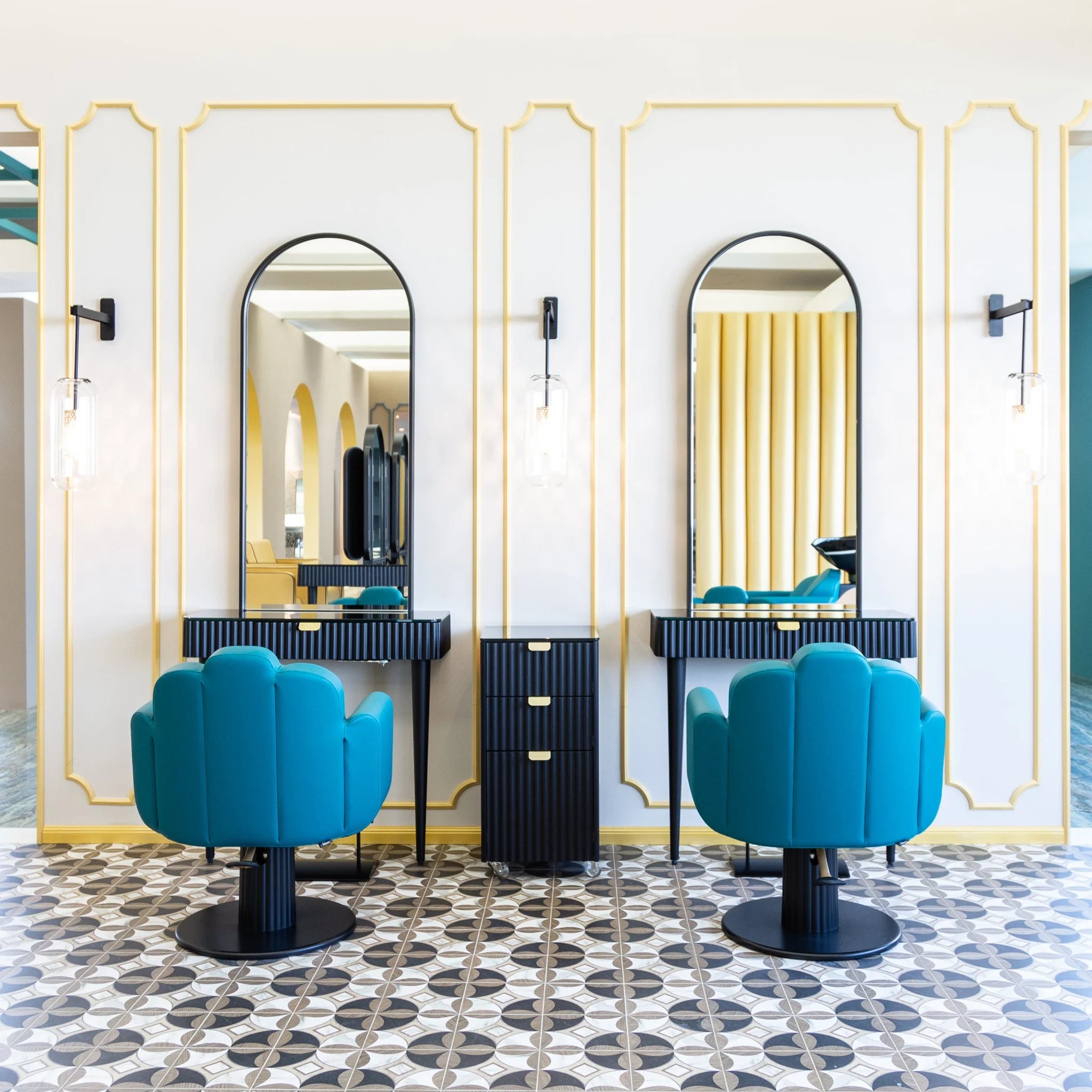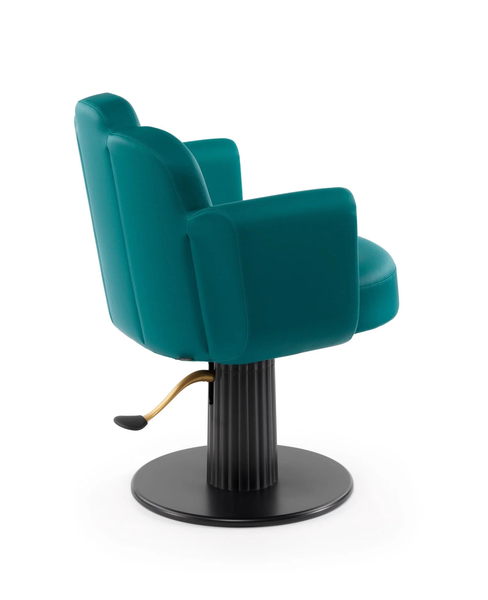 Base giratoria color negro para sillón con bomba hidráulica, estructura interna en acero y fundición, carcasa en ABS negro satinado. Palanca de aluminio de color dorado con protección de goma antideslizante. Estructura de espuma de poliuretano moldeada por inyección con refuerzo interno de acero, compuesto por asiento y respaldo. Tapicería de Skay. Ranura de drenaje vertical del cabello. Compatibilidad universal con las bases de la gama Maletti.