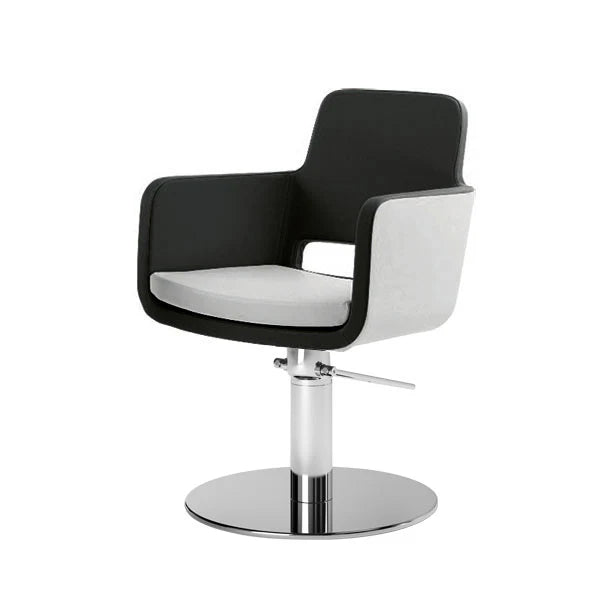 Color arena. Sillón de trabajo giratorio con estructura en espuma de poliuretano, tapizado en piel sintética que permite la transpiración, base Circular hidráulica de aluminio satinado. Con freno que permite trabajar cómodamente, girar o mantener en una sola posición al cliente.